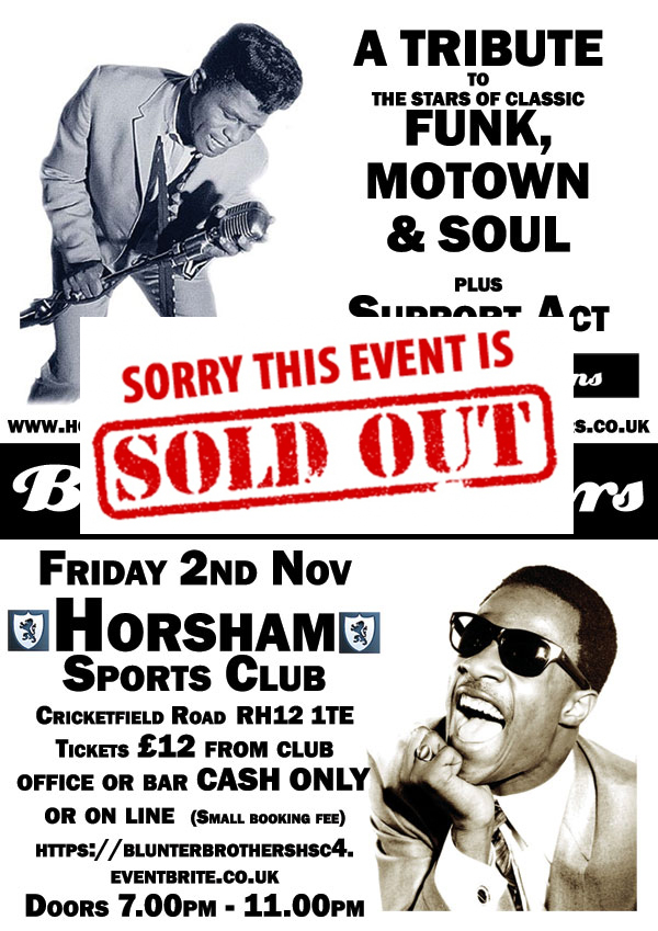 Horsham Sports Club Cricketfield Road, Horsham, United KingdomThe Blunter Brothers return to their favourite Horsham Venue. Always sells out so best get your tickets early. This time they bring a support act too! The BB Horns will present a mix of 98% Funk and 2% Jazzy Instrumentals before the Blunter Brothers deliver all your favourite Funky covers. Tickets available from the venue […]